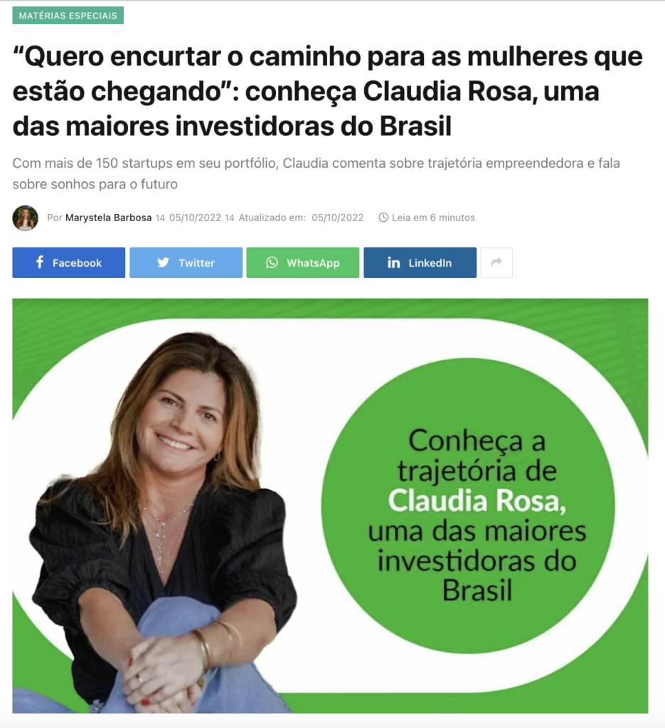 Executiva com mais de 25 anos de experiência em gestão, tecnologia, inovação e investimentos, Claudia oferece conteúdos personalizados, adaptados ao público-alvo e aos objetivos dos clientes.